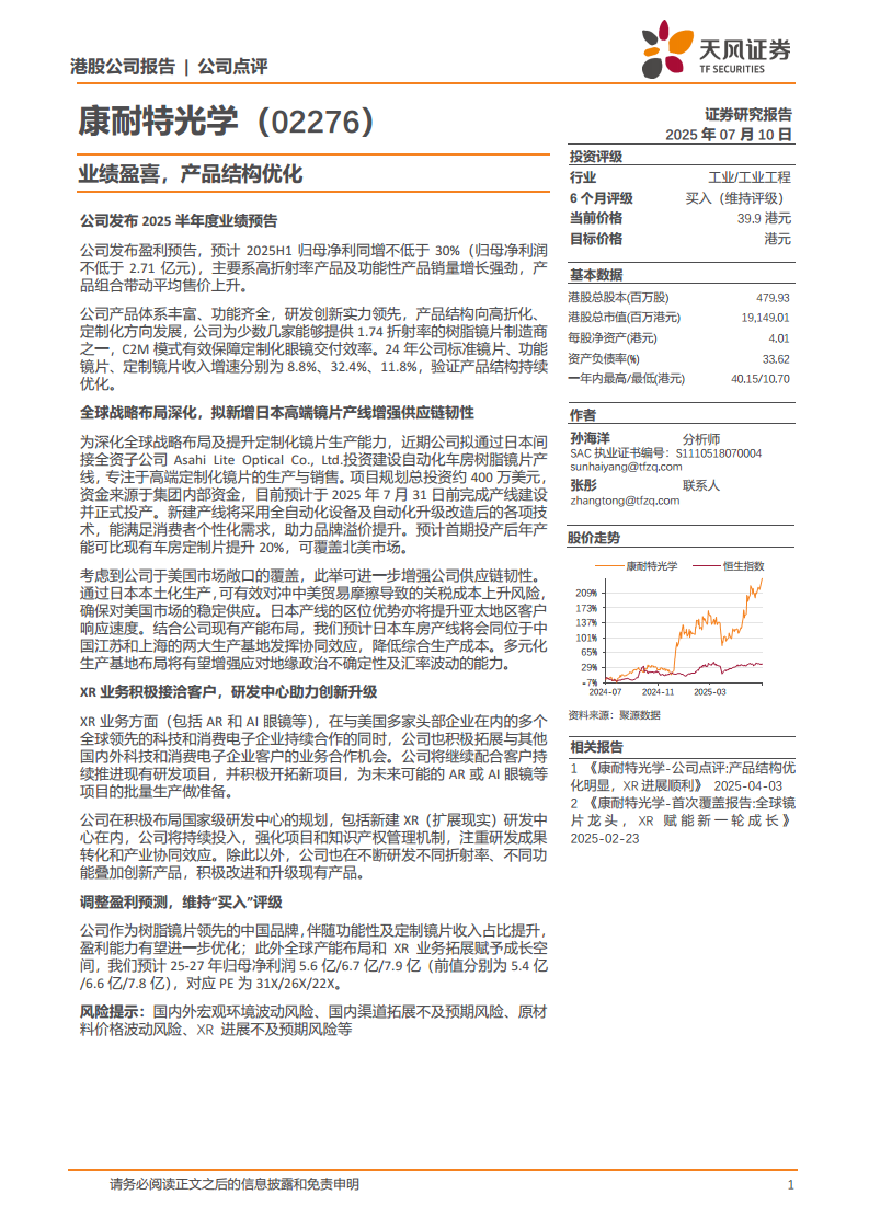 康耐特光学(02276):业绩盈喜,产品结构优化