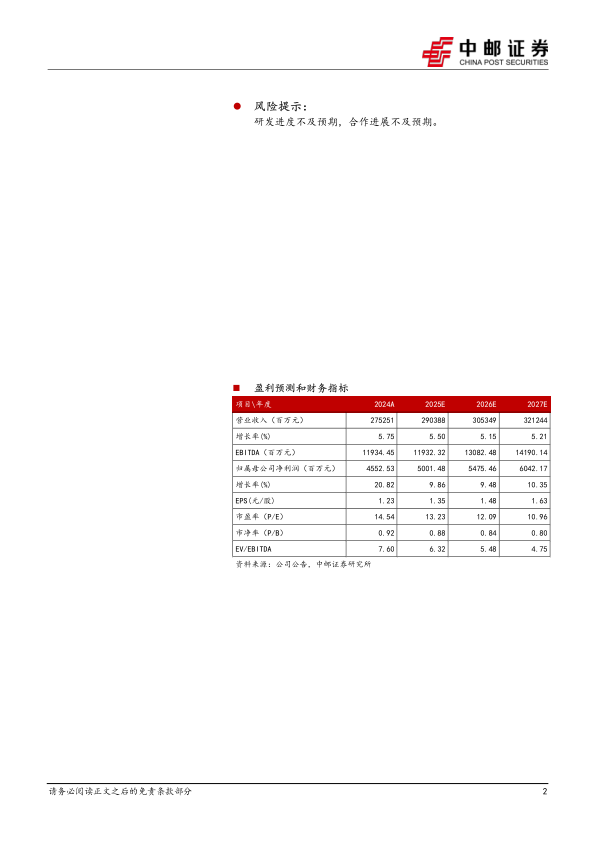 我们预计公司2025-2027年营收分别为2903.88/3053.49/3212.44亿元,归母净利润分别为50.01/54.75/60.42亿元,当前股价对应PE分别为13/12/11倍,维持“买入”评级。