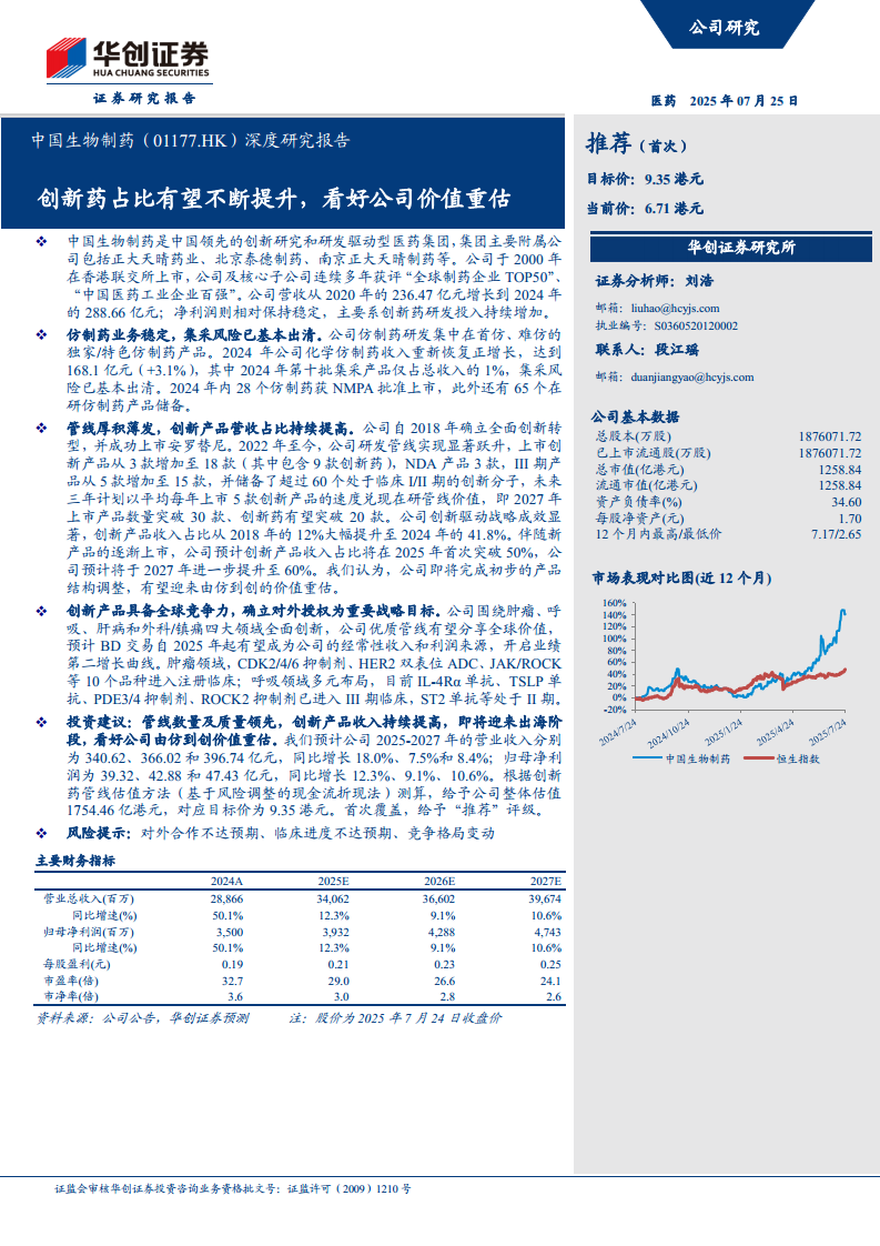 中国生物制药(01177):深度研究报告:创新药占比有望不断提升,看好公司价值重估