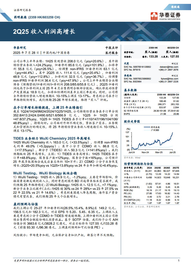 药明康德(603259):2Q25收入利润高增长
