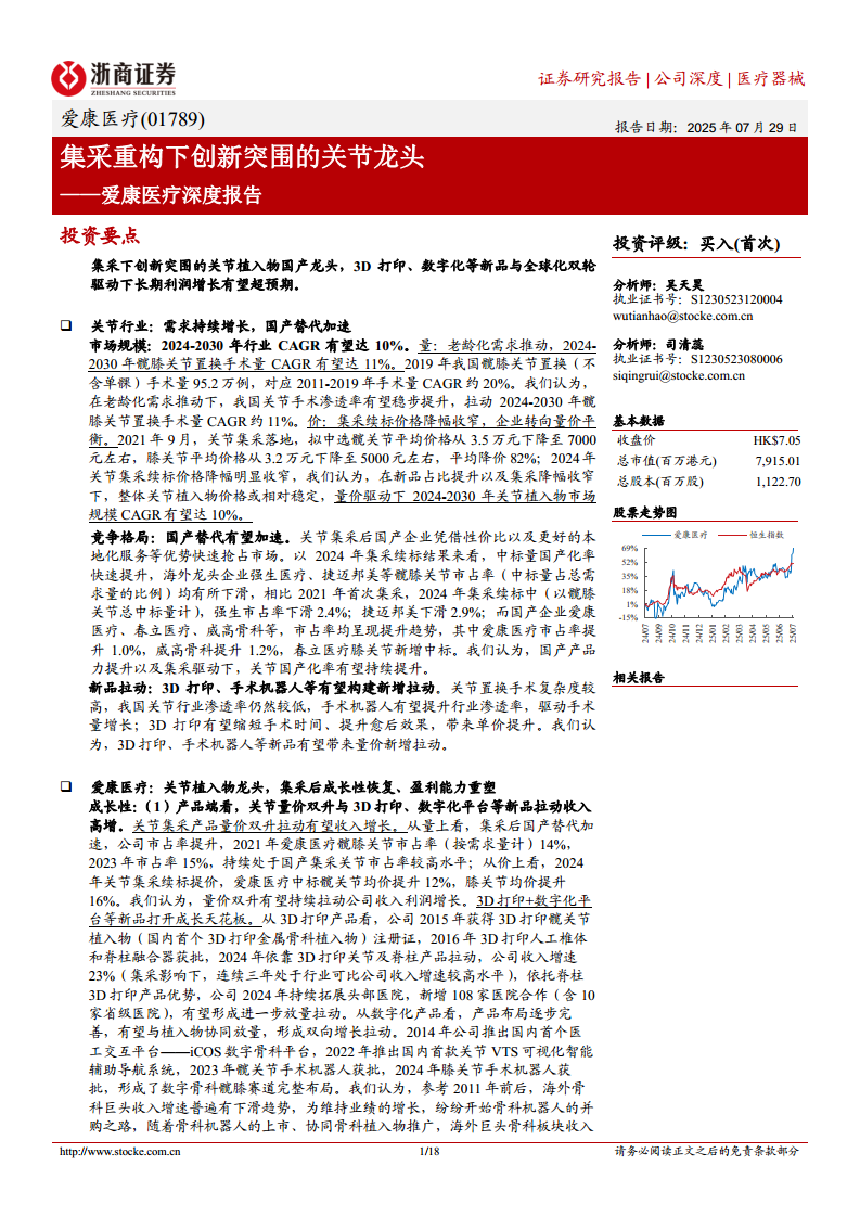 爱康医疗(01789):深度报告:集采重构下创新突围的关节龙头