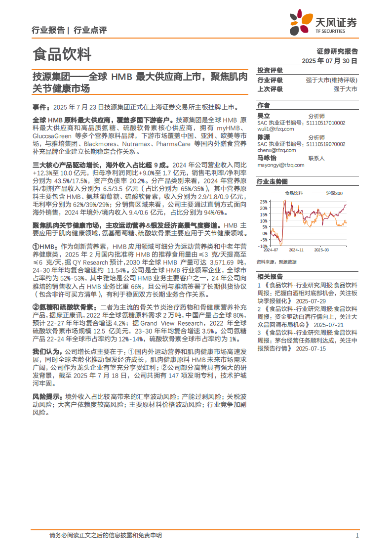 技源集团:全球HMB最大供应商上市,聚焦肌肉关节健康市场