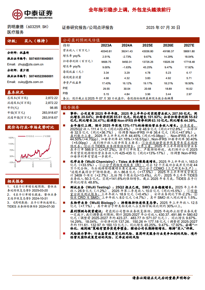 药明康德(603259):全年指引稳步上调,外包龙头踏浪前行
