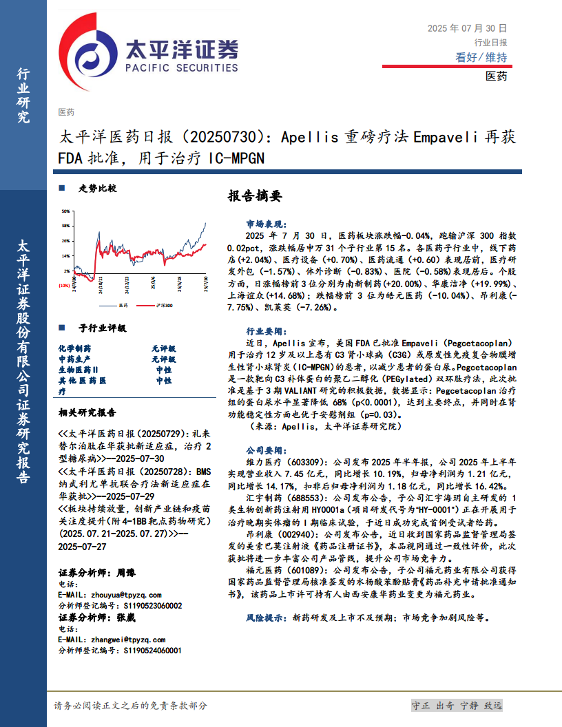 太平洋医药日报:Apellis重磅疗法Empaveli再获FDA批准,用于治疗IC-MPGN