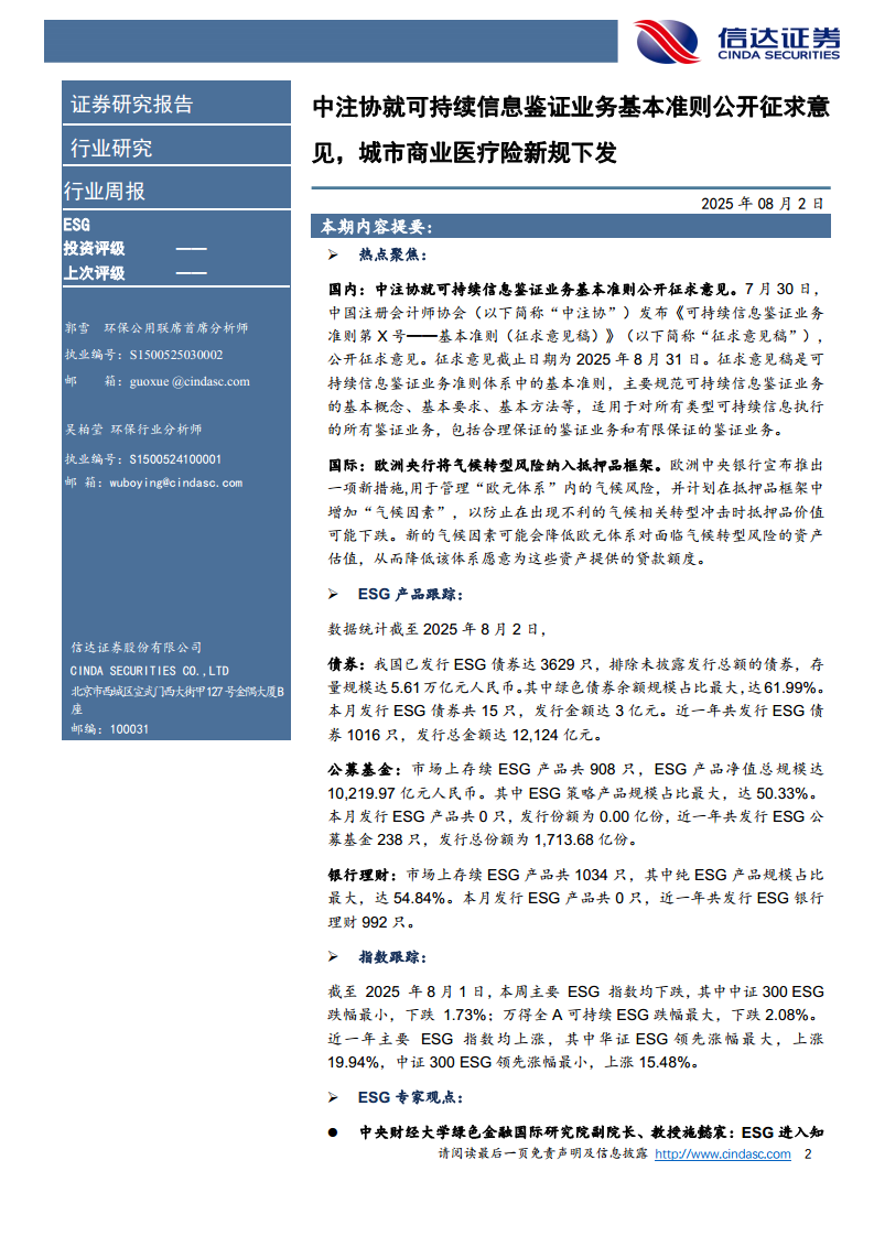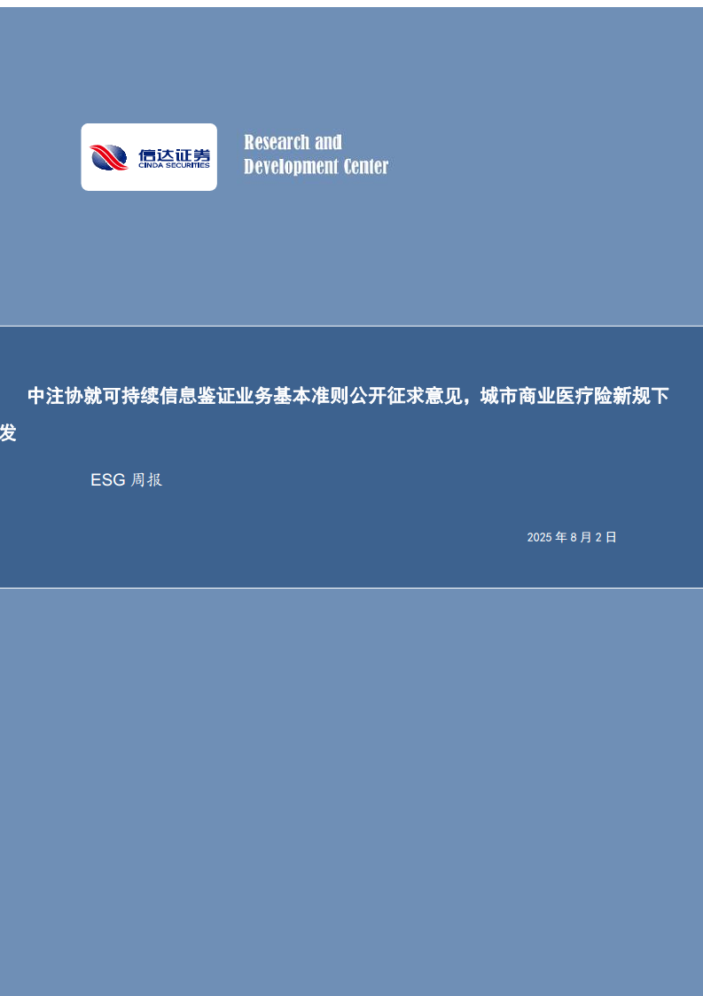 中注协就可持续信息鉴证业务基本准则公开征求意见,城市商业医疗险新规下发