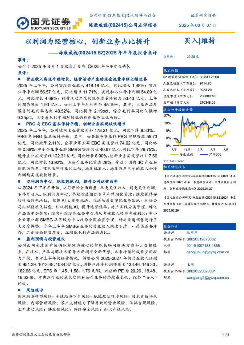 海康威视(002415):盈利能力持续改善,创新业务快速增长