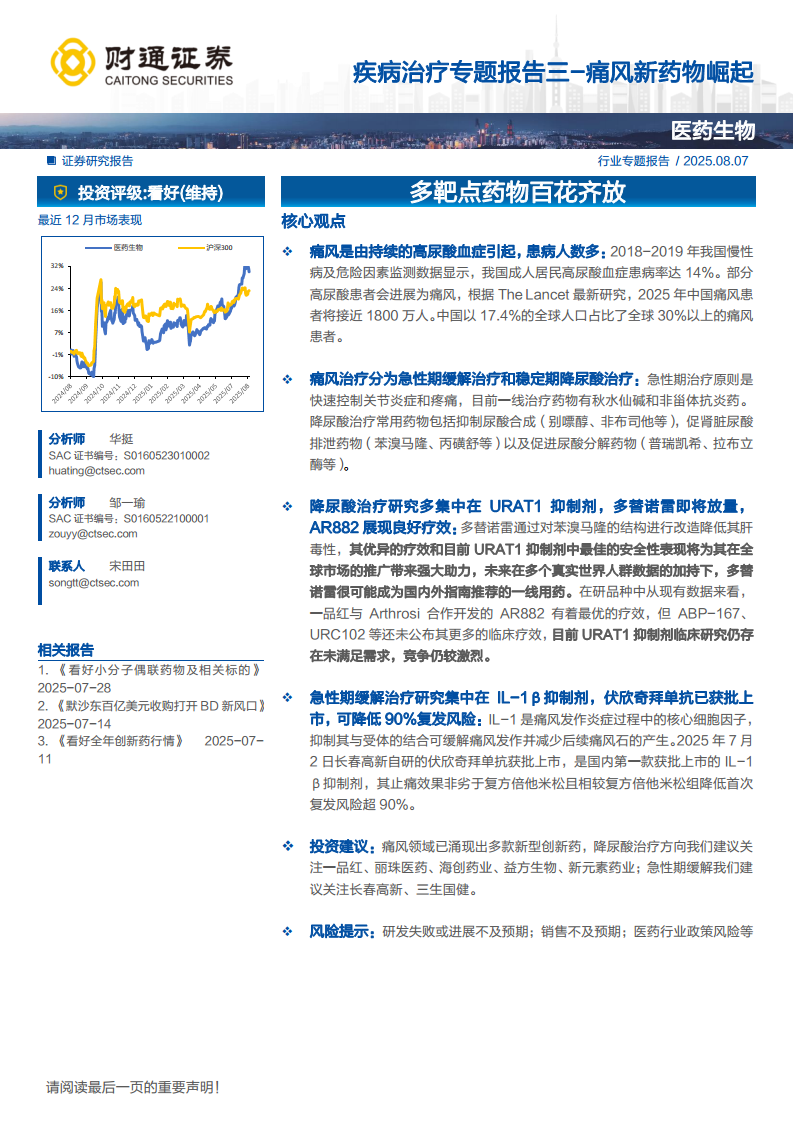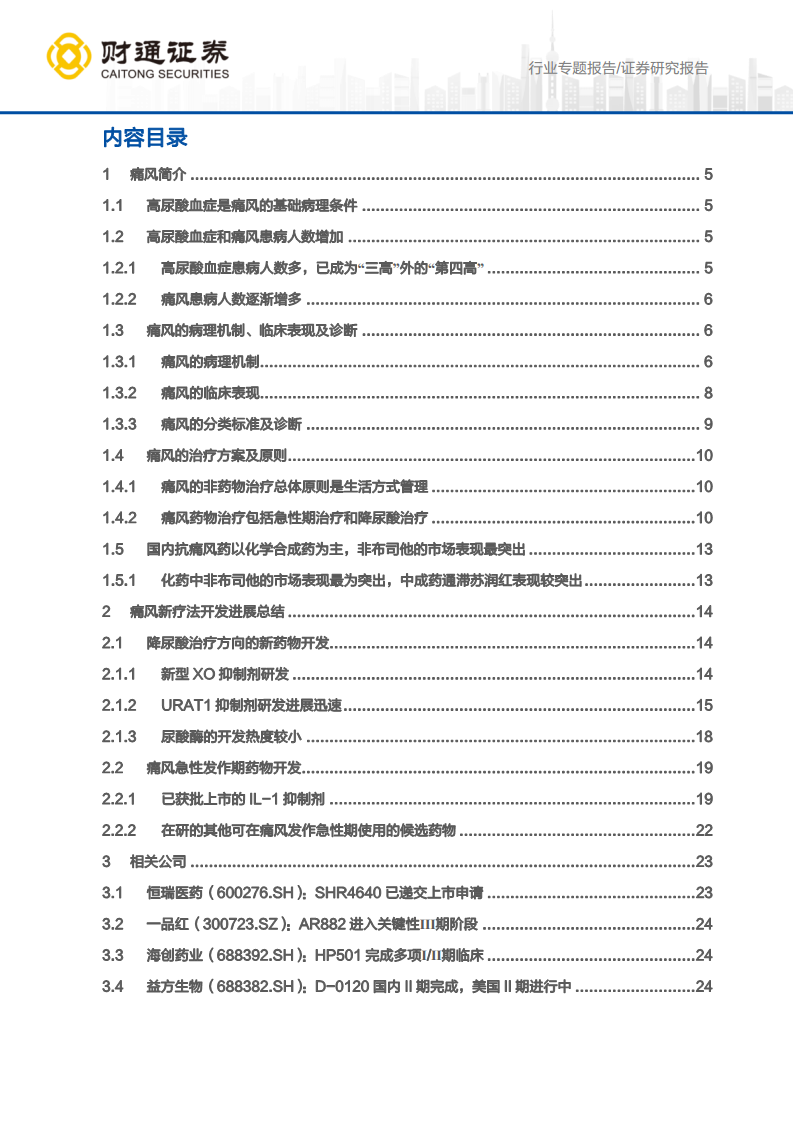医药生物行业专题报告:痛风新药物崛起:多靶点药物百花齐放
