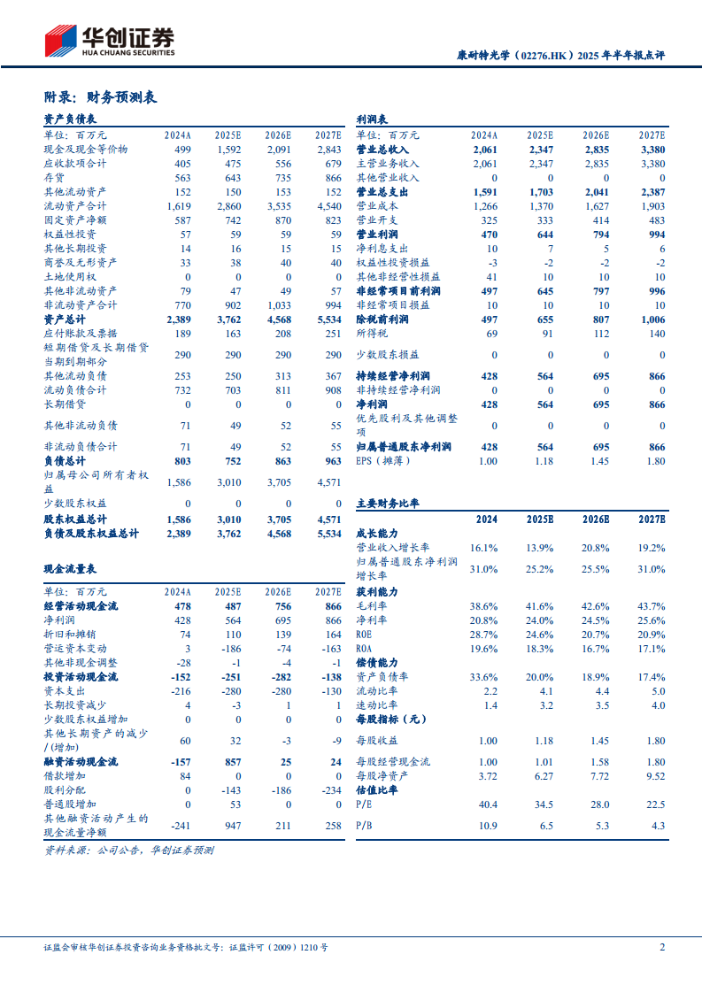 康耐特光学(02276):2025年半年报点评:利润率稳步改善,持续积极布局XR业务