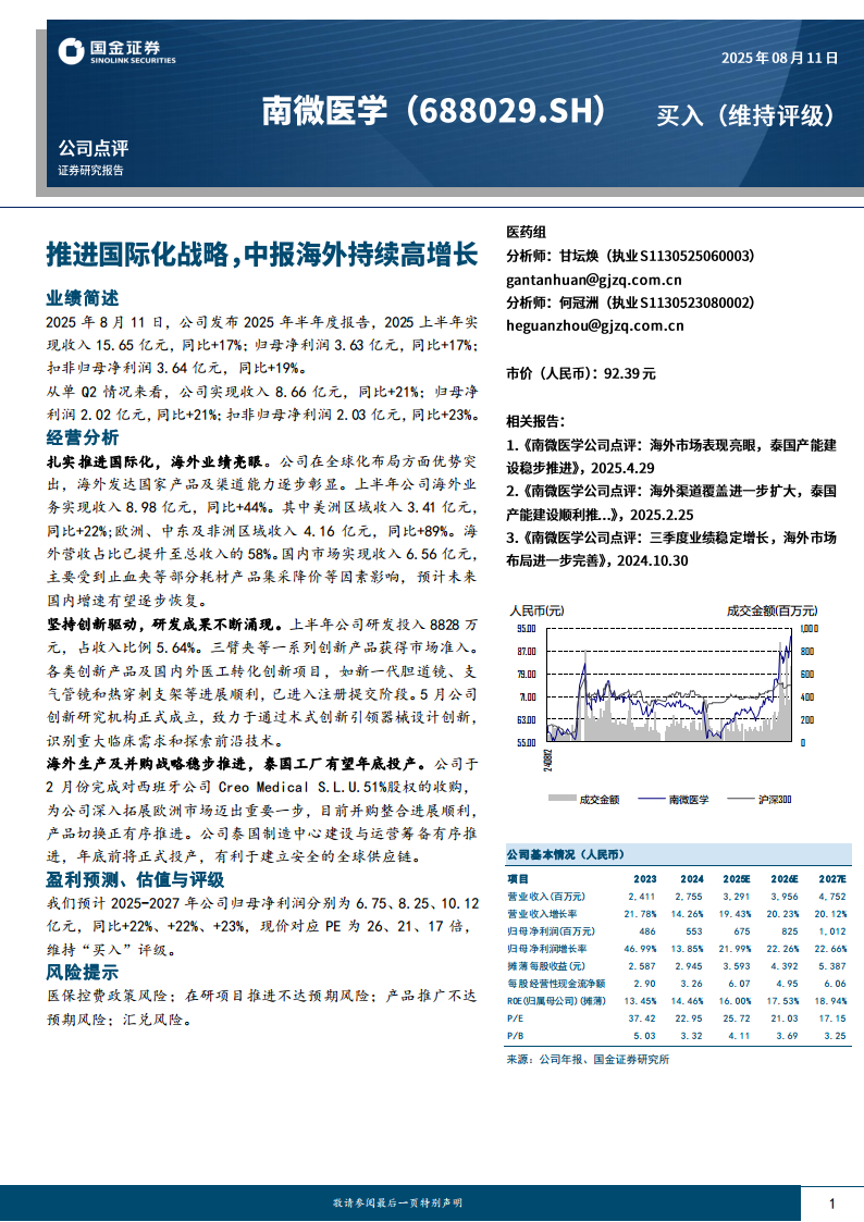 南微医学(688029):推进国际化战略,中报海外持续高增长