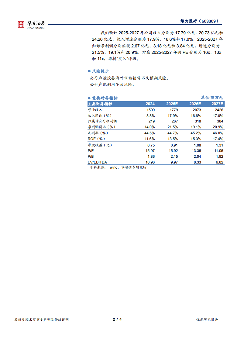 维力医疗(603309):2025中报业绩符合预期,海外市场增速亮眼
