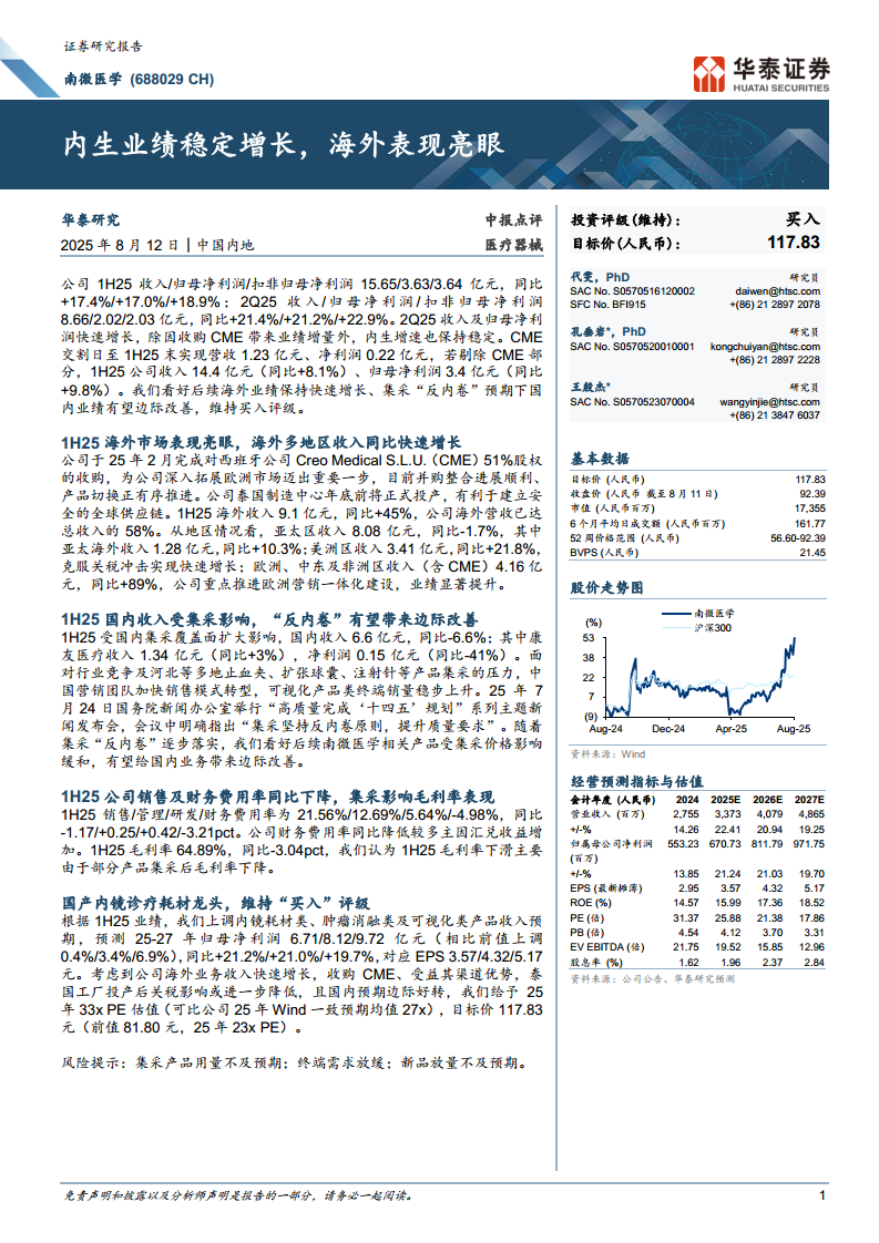 南微医学(688029):内生业绩稳定增长,海外表现亮眼