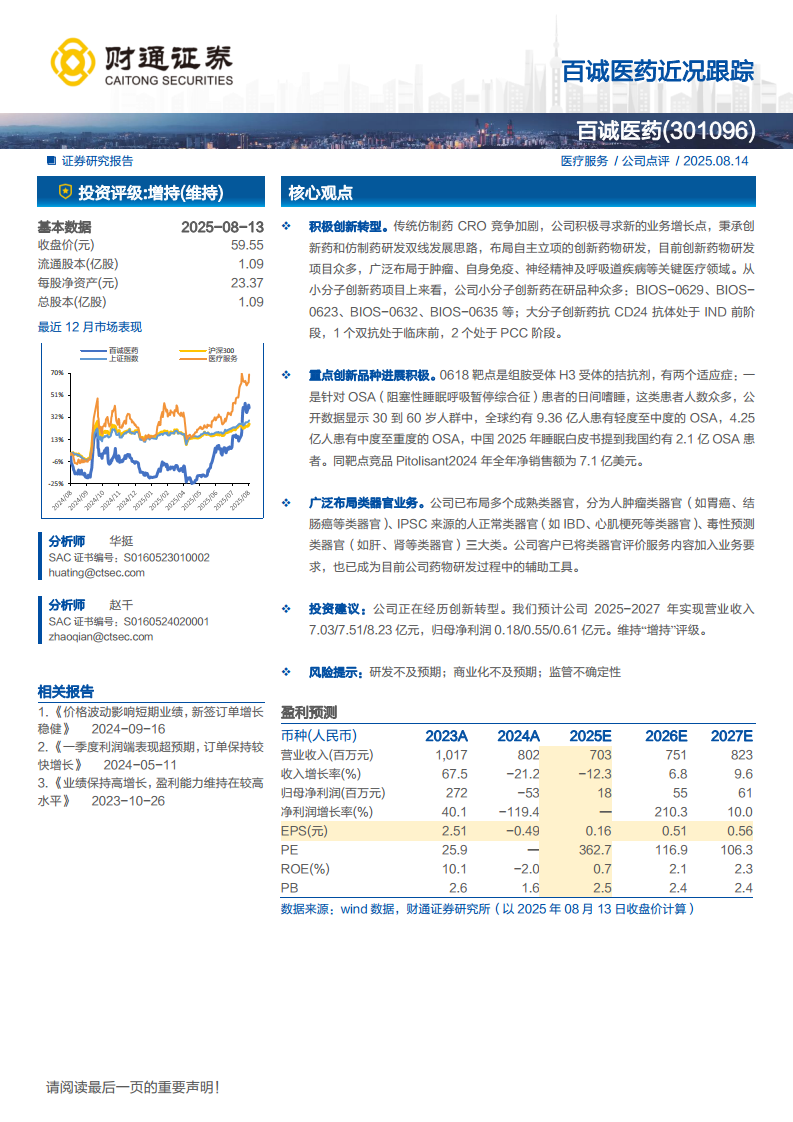 百诚医药(301096):百诚医药近况跟踪