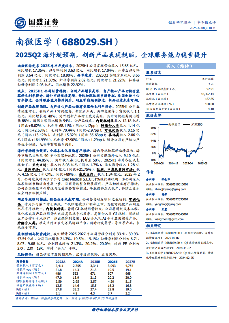 南微医学(688029):2025Q2海外超预期,创新产品表现靓丽,全球服务能力稳步提升