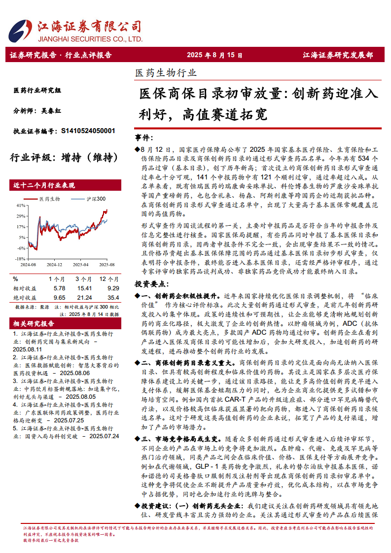 医保商保目录初审放量:创新药迎准入利好,高值赛道拓宽