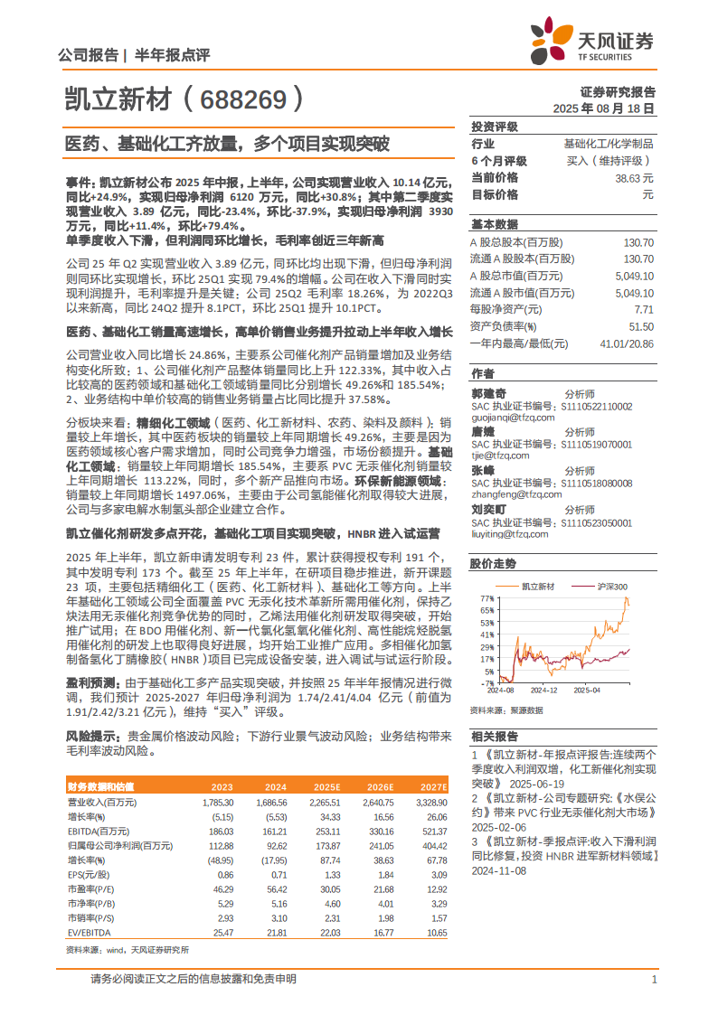 凯立新材(688269):医药、基础化工齐放量,多个项目实现突破