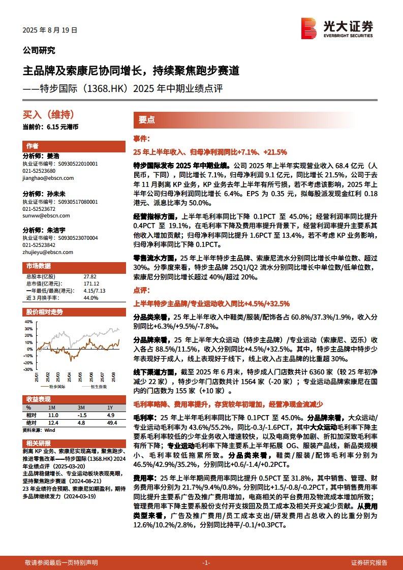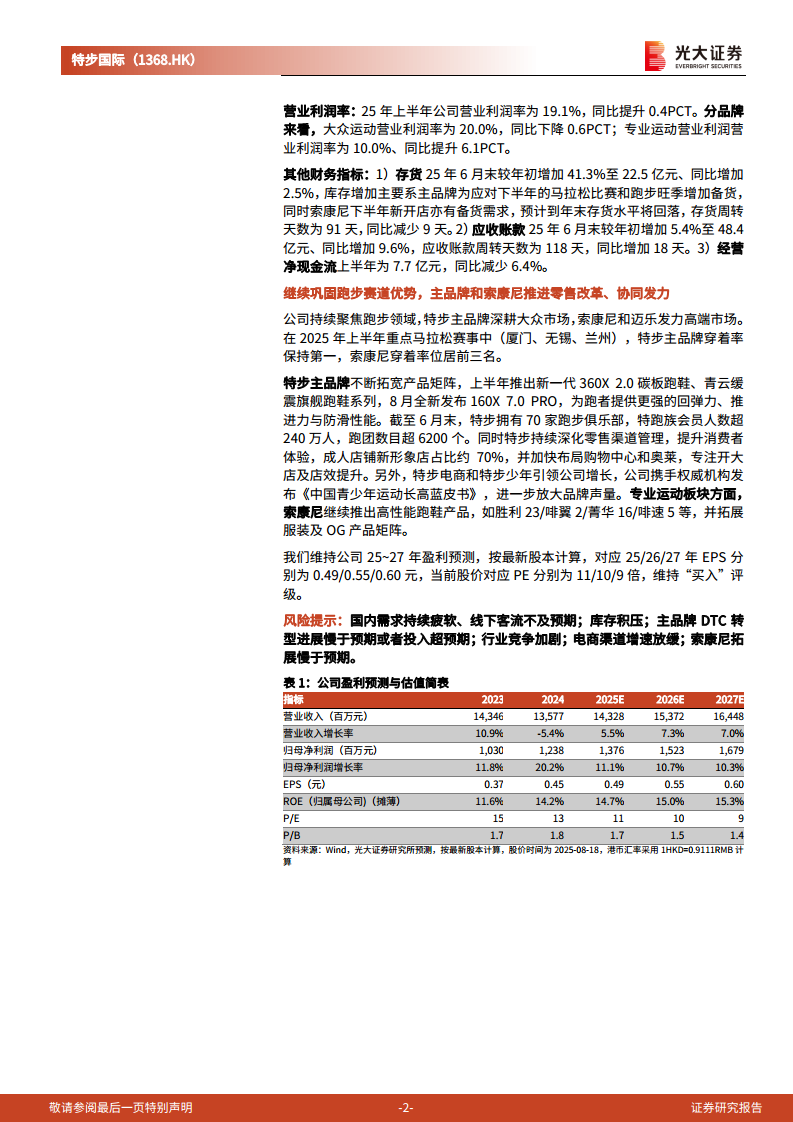 特步国际(01368):主品牌及索康尼协同增长,持续聚焦跑步赛道