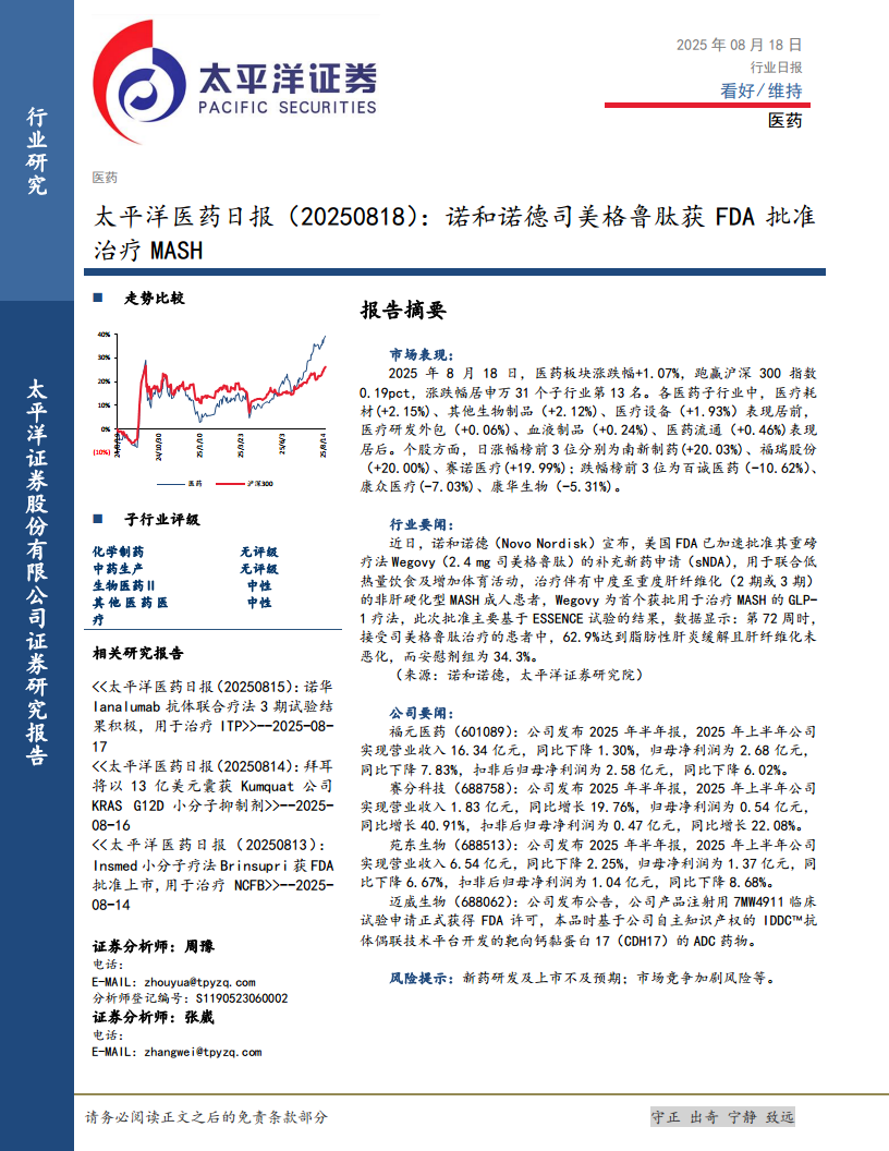 太平洋医药日报:诺和诺德司美格鲁肽获FDA批准