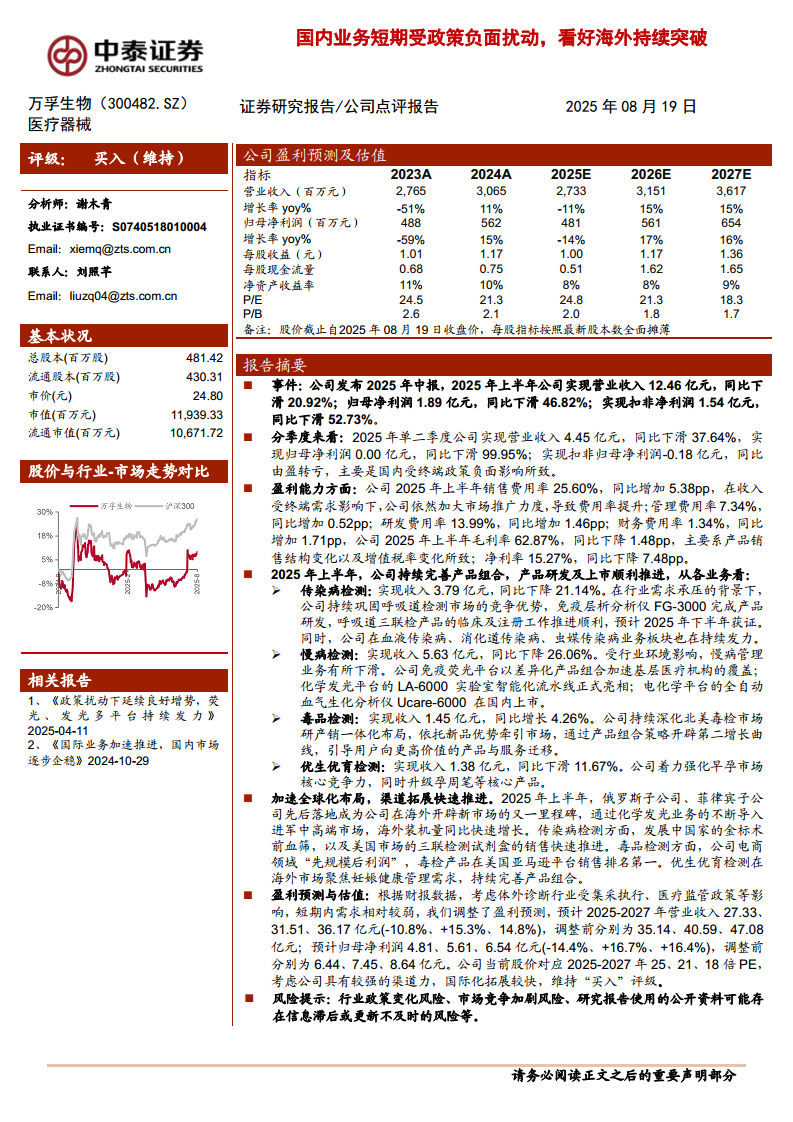 万孚生物(300482):国内业务短期受政策负面扰动,看好海外持续突破