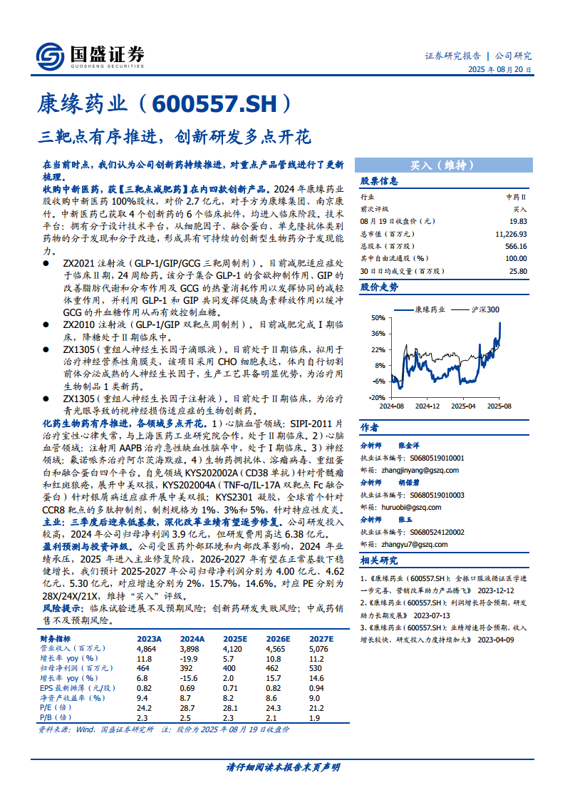 康缘药业(600557):三靶点有序推进,创新研发多点开花