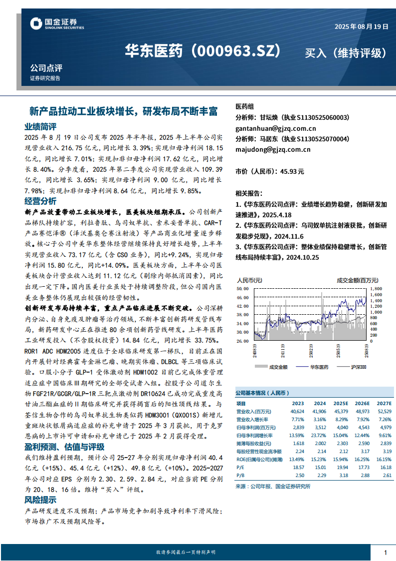 华东医药(000963):新产品拉动工业板块增长,研发布局不断丰富
