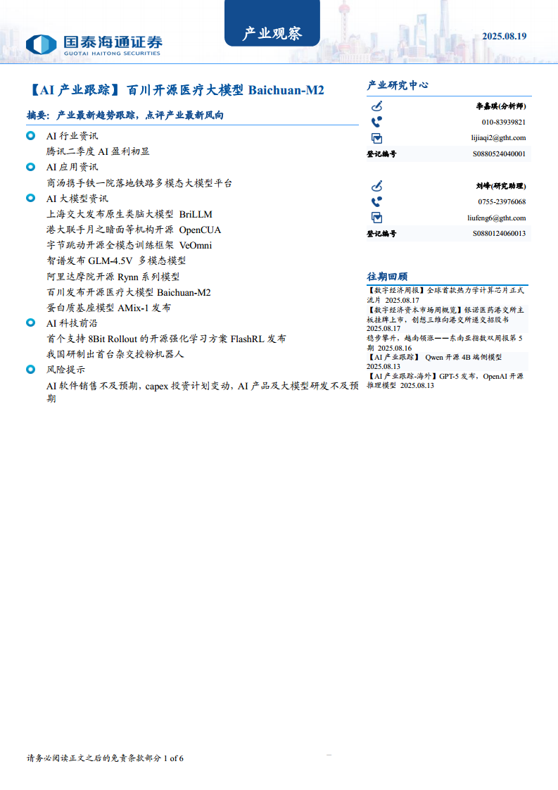 AI产业跟踪:百川开源医疗大模型bAIchuan-M2
