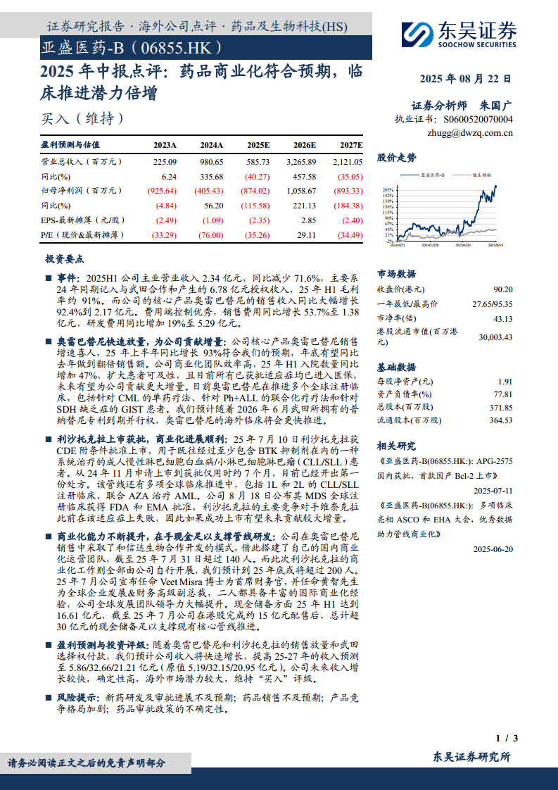 亚盛医药-B(06855):药品商业化符合预期,临床推进潜力倍增