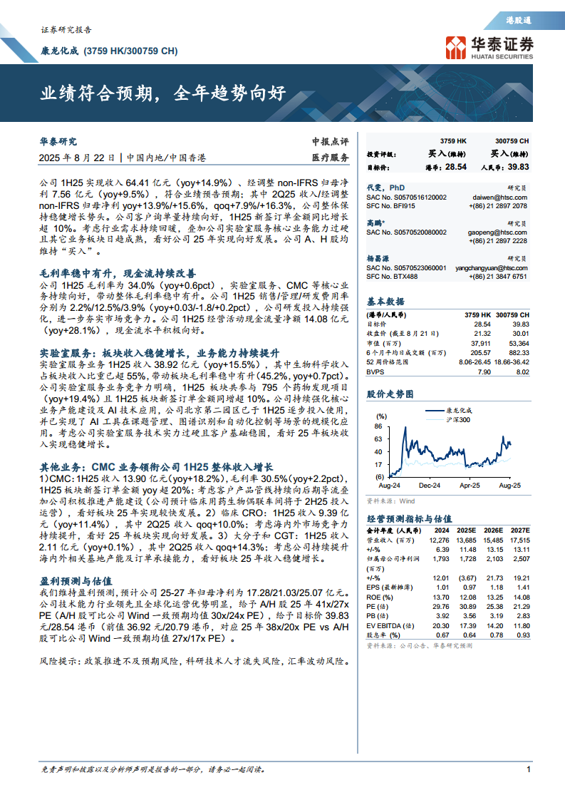 康龙化成(300759):业绩符合预期,全年趋势向好