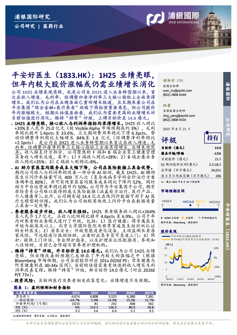 平安好医生(01833):1H25业绩亮眼,但年内较大股价涨幅或仍需业绩增长消化