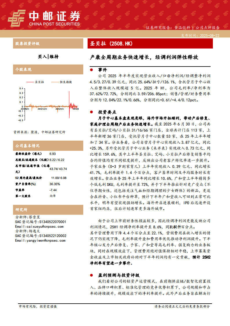 圣贝拉(02508):产康全周期业务快速增长,经调利润弹性释放