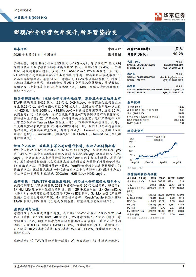 沛嘉医疗-B(09996):瓣膜、神介经营效率提升,新品蓄势待发