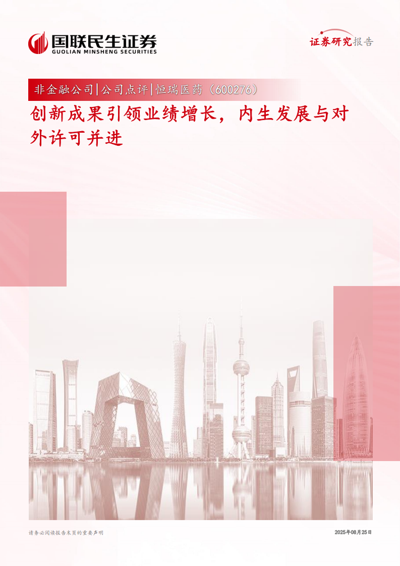 恒瑞医药(600276):创新成果引领业绩增长,内生发展与对外许可并进