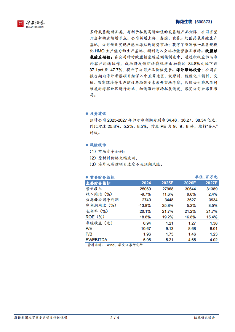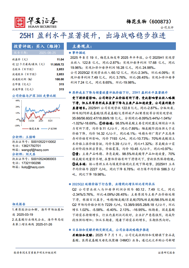 梅花生物(600873):25H1盈利水平显著提升,出海战略稳步推进