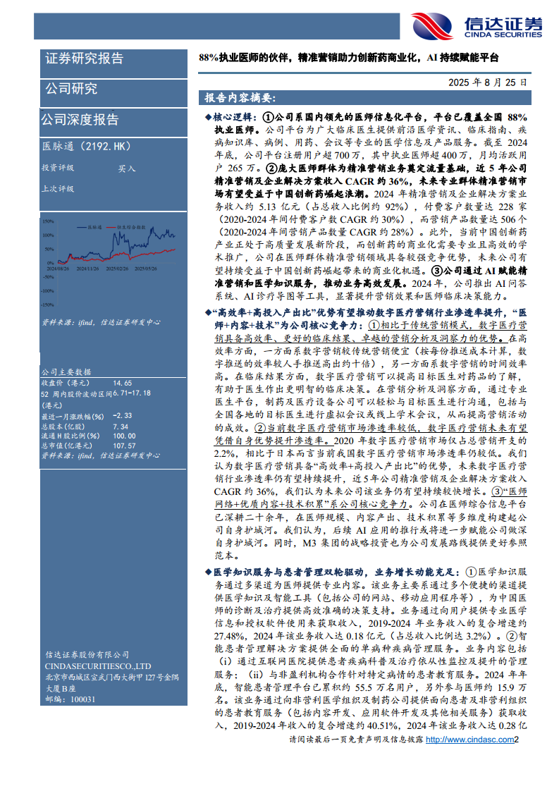 医脉通(02192):88%执业医师的伙伴,精准营销助力创新药商业化,AI持续赋能平台