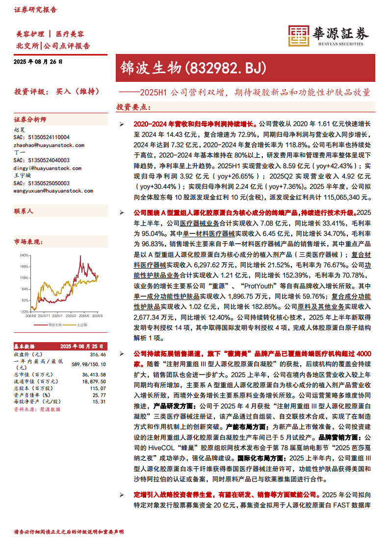 锦波生物(832982):2025H1公司营利双增,期待凝胶新品和功能性护肤品放量