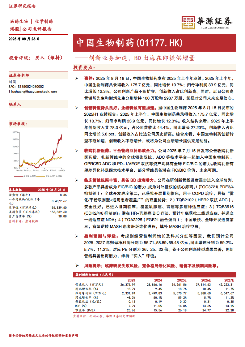 中国生物制药(01177):创新业务加速,BD出海在即提供增量