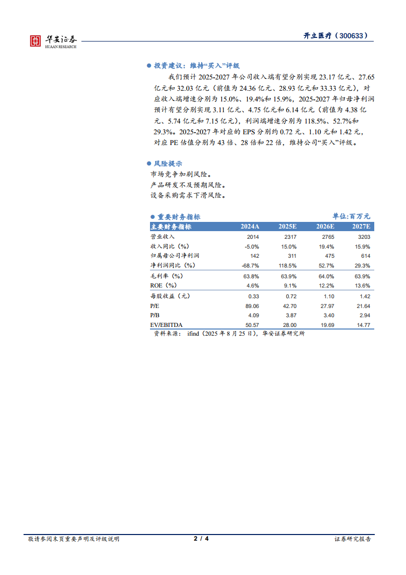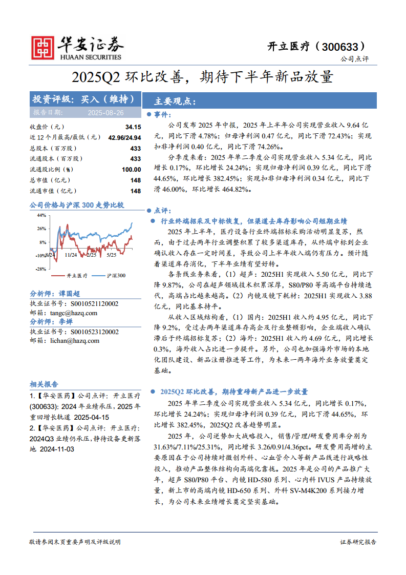开立医疗(300633):2025Q2环比改善,期待下半年新品放量