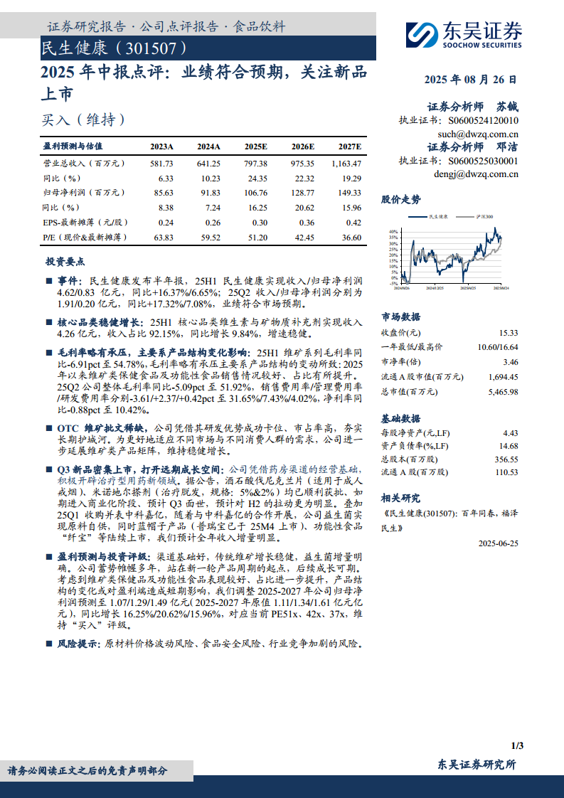 民生健康(301507):业绩符合预期,关注新品上市