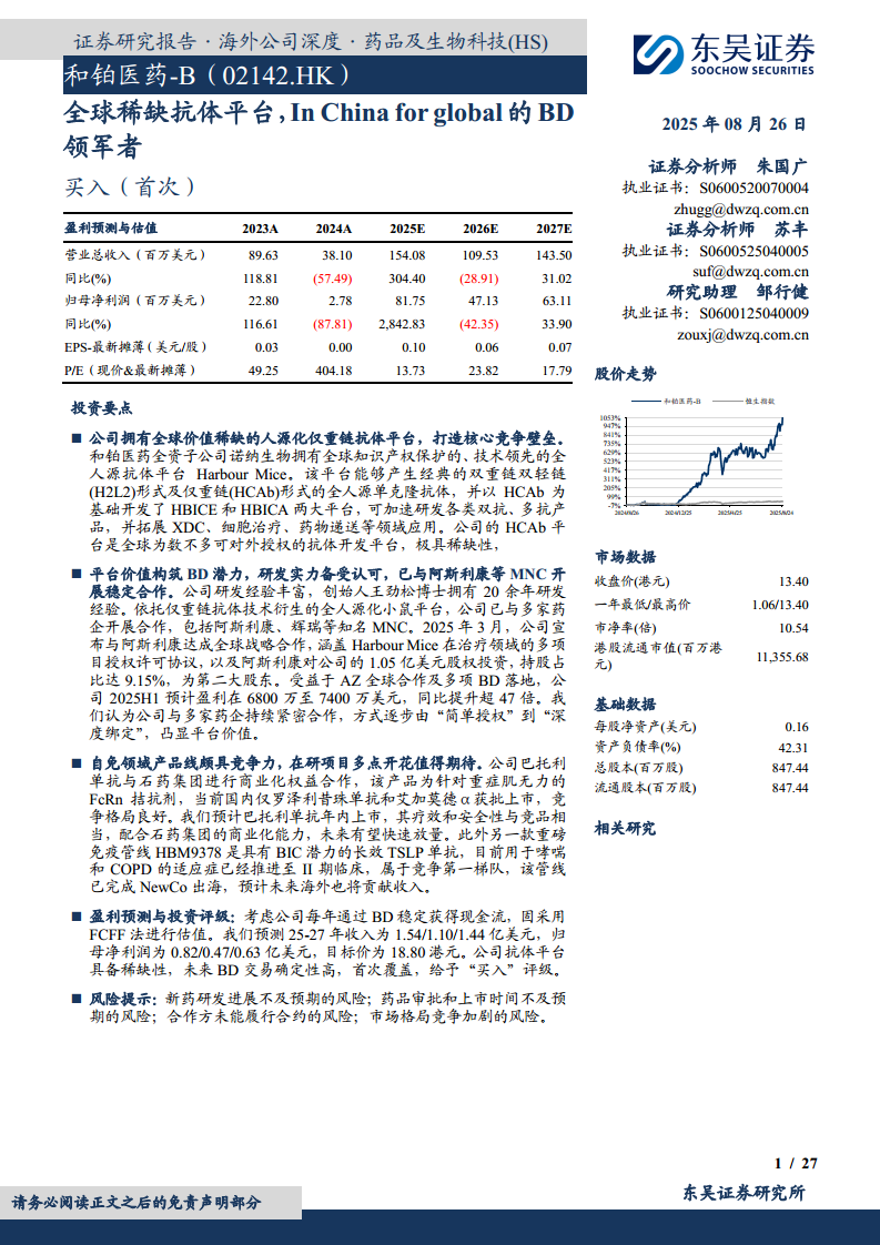 和铂医药-B(02142):全球稀缺抗体平台,InChinaforglobal的BD领军者