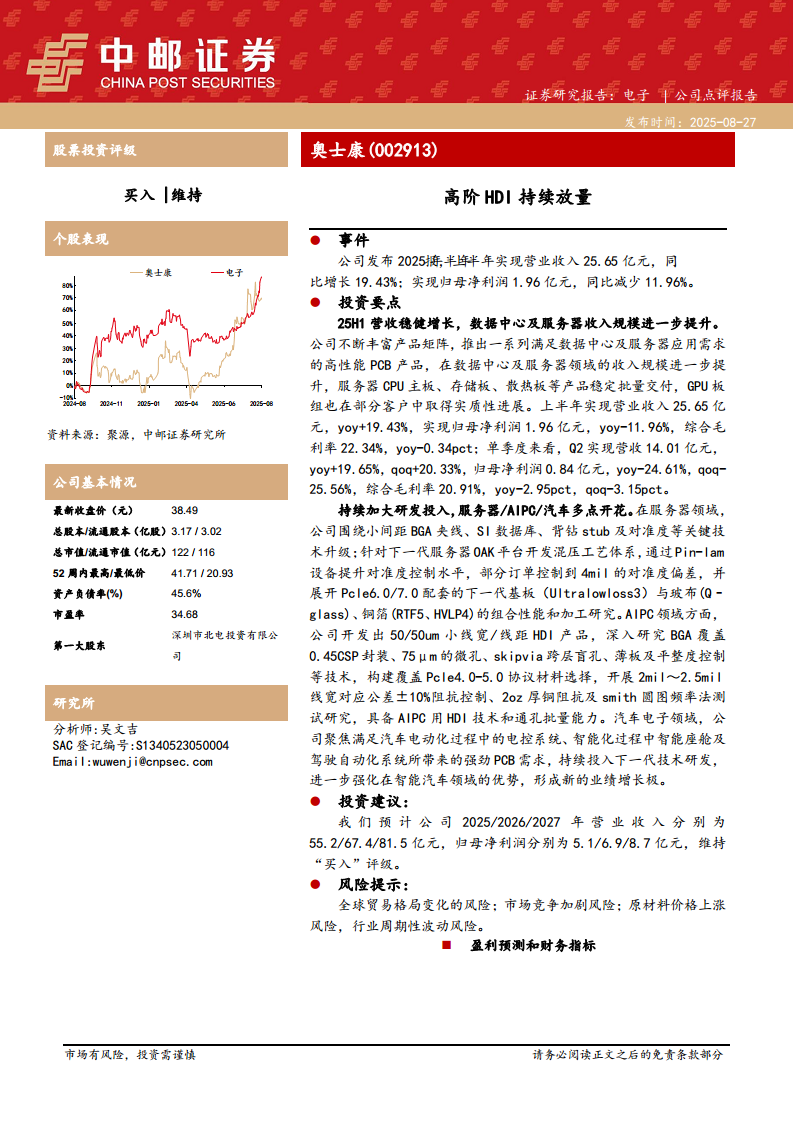 奥士康(002913):高阶HDI持续放量