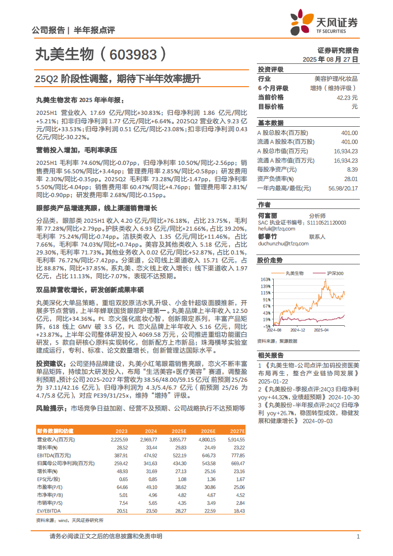 丸美生物(603983):25Q2阶段性调整,期待下半年效率提升
