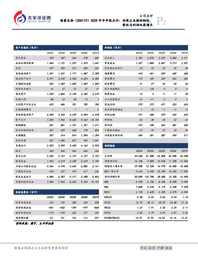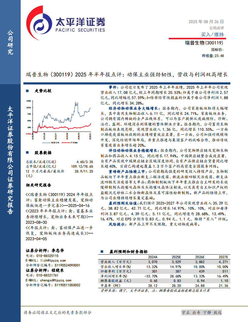 瑞普生物(300119):2025年半年报点评:动保主业强劲韧性,营收与利润双高增长