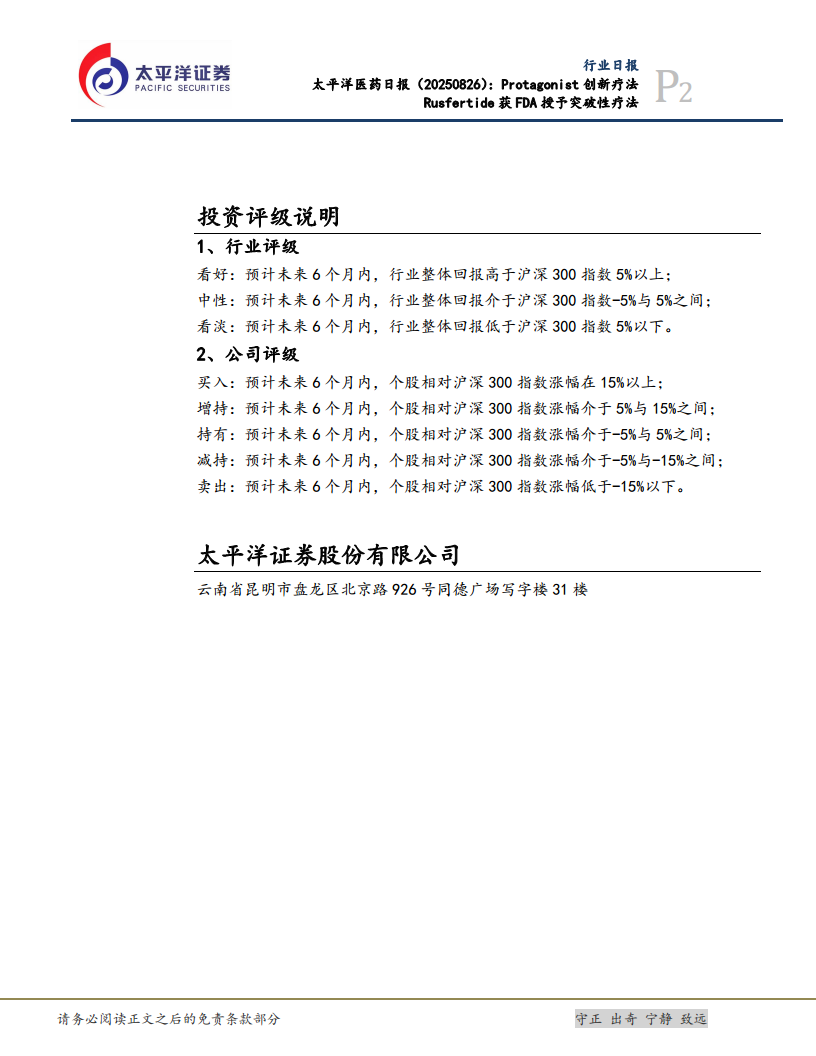 太平洋医药日报:Protagonist创新疗法Rusfertide获FDA授予突破性疗法