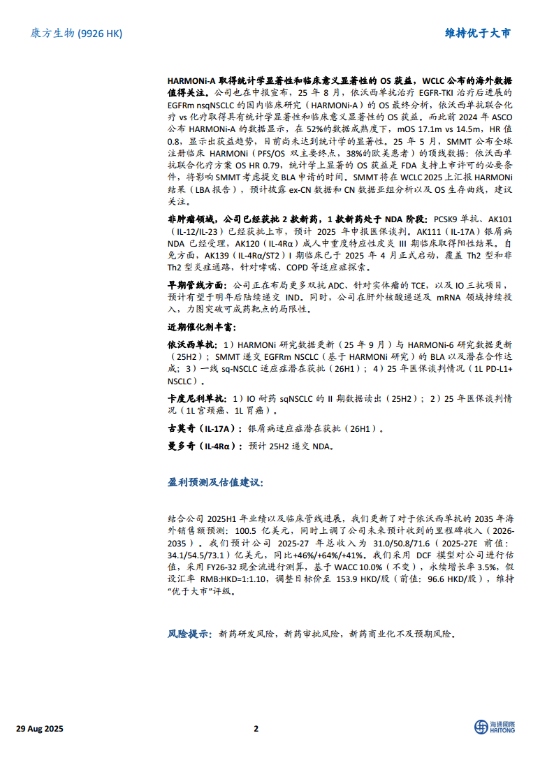 康方生物(09926):25H1:HARMONi-A 获统计学显著获益结果,建议关注 2025 WCLC 数据催化