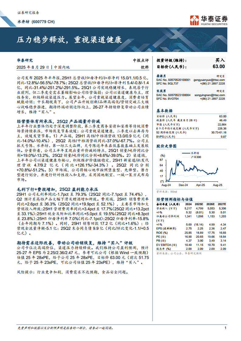 水井坊(600779):压力稳步释放,重视渠道健康