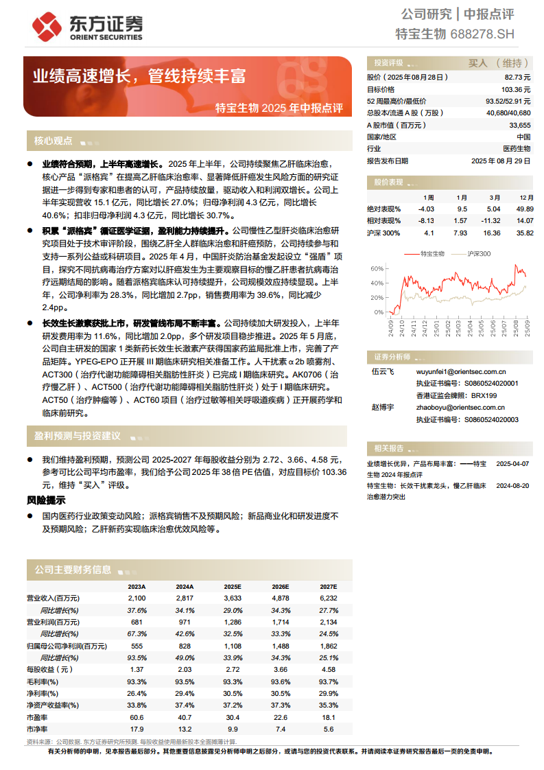 特宝生物(688278):业绩高速增长,管线持续丰富