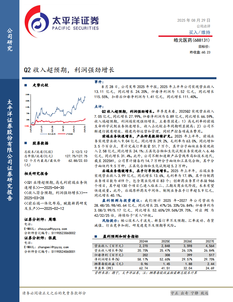 皓元医药(688131):Q2收入超预期,利润强劲增长
