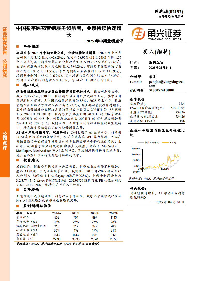 医脉通(02192):2025 年中期业绩点评:中国数字医药营销服务领航者,业绩持续快速增长