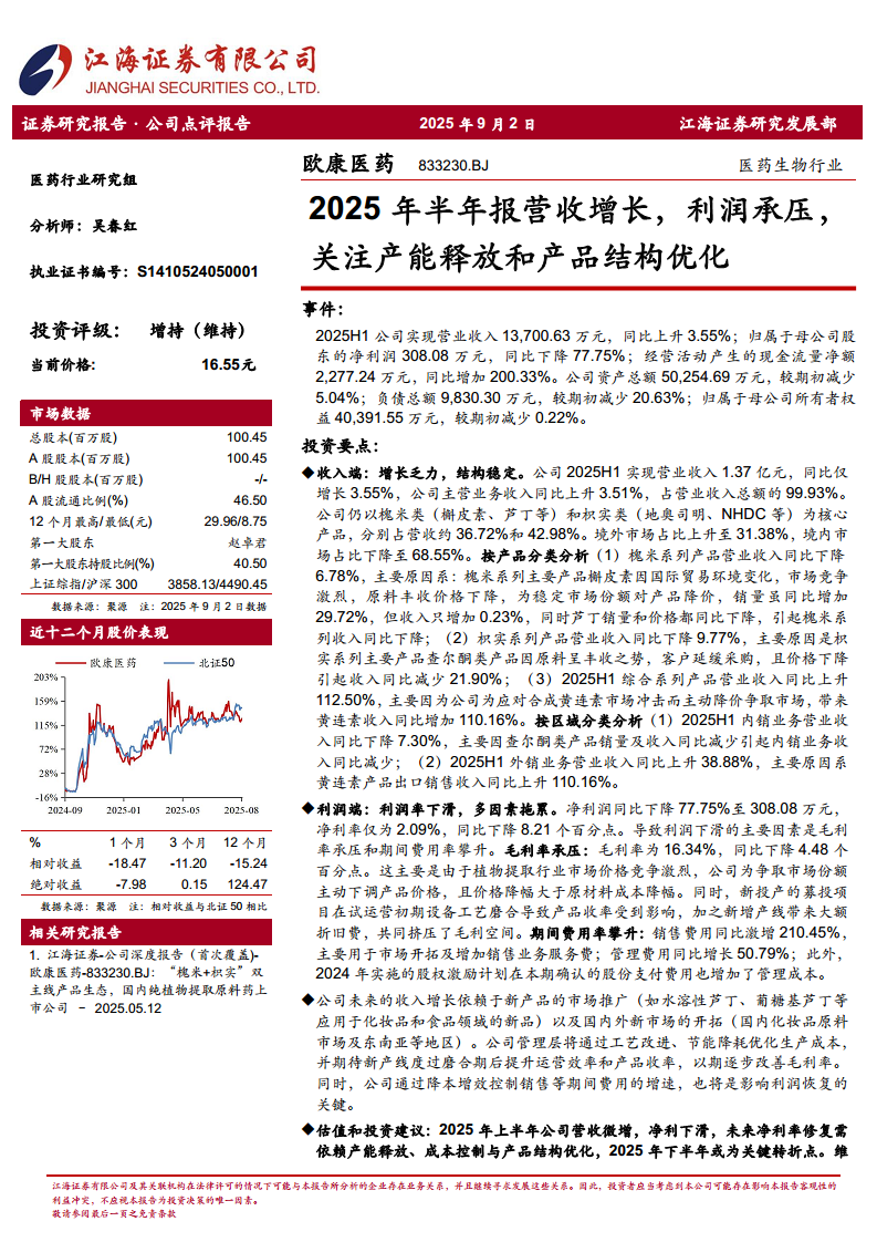 医药生物行业:2025年半年报营收增长,利润承压,关注产能释放和产品结构优化