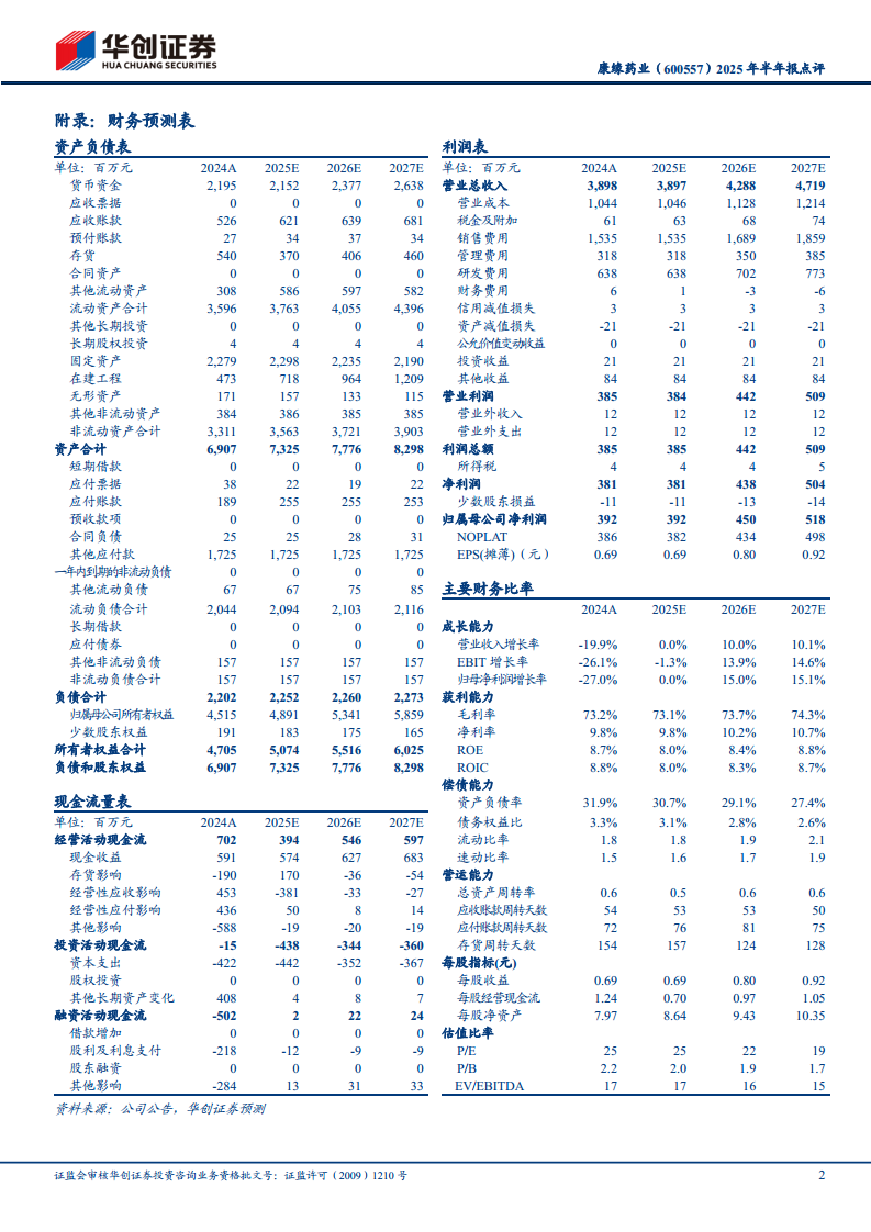 康缘药业(600557):2025年半年报点评:业绩短期承压,研发稳步推进