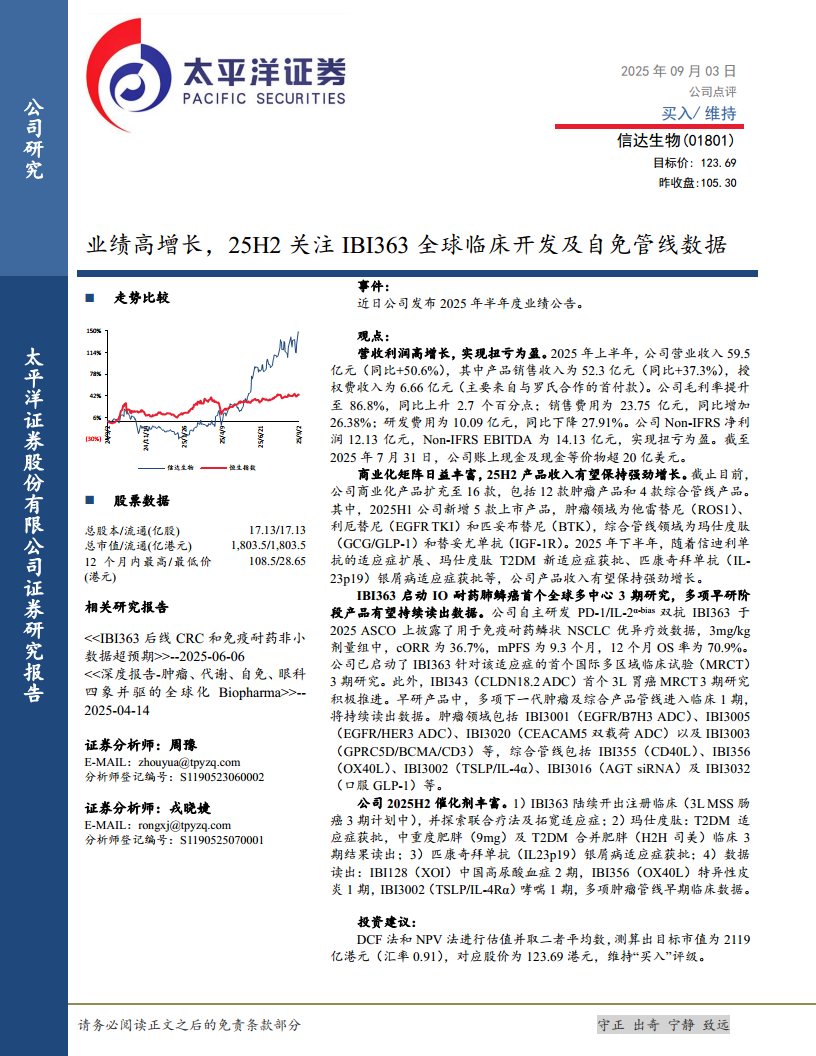 信达生物(01801):业绩高增长,25H2关注IBI363全球临床开发及自免管线数据